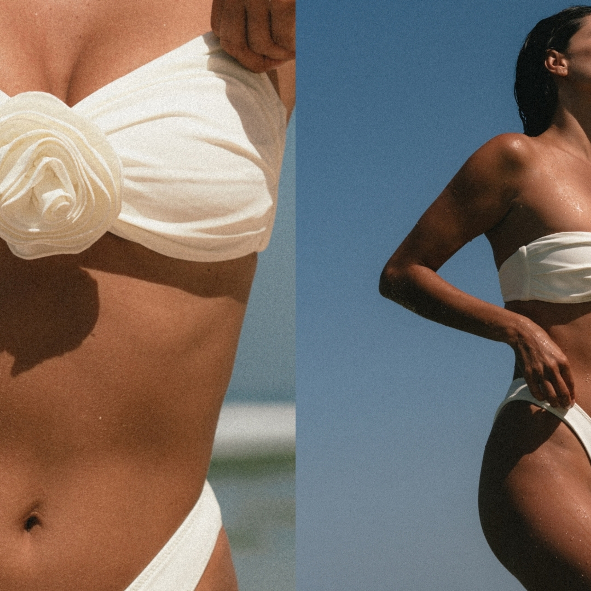 За образ бутона в дропе отвечают купальники с фактурной драпировкой и аксессуары в форме розы со сверкающими стразами.